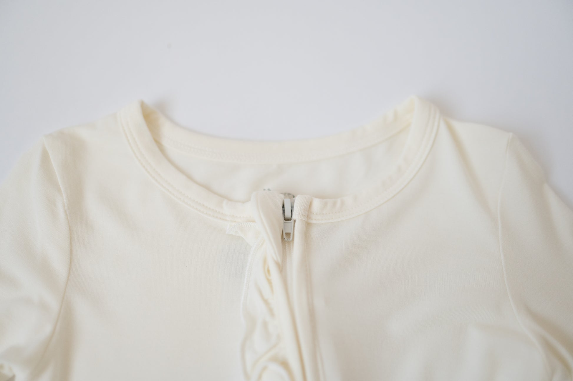 Designed for dreamy sleep and all-day snuggles, our Infant Ruffle Zip is made from ultra-soft, breathable 95% viscose from bamboo and 5% spandex for the perfect stretchy fit.